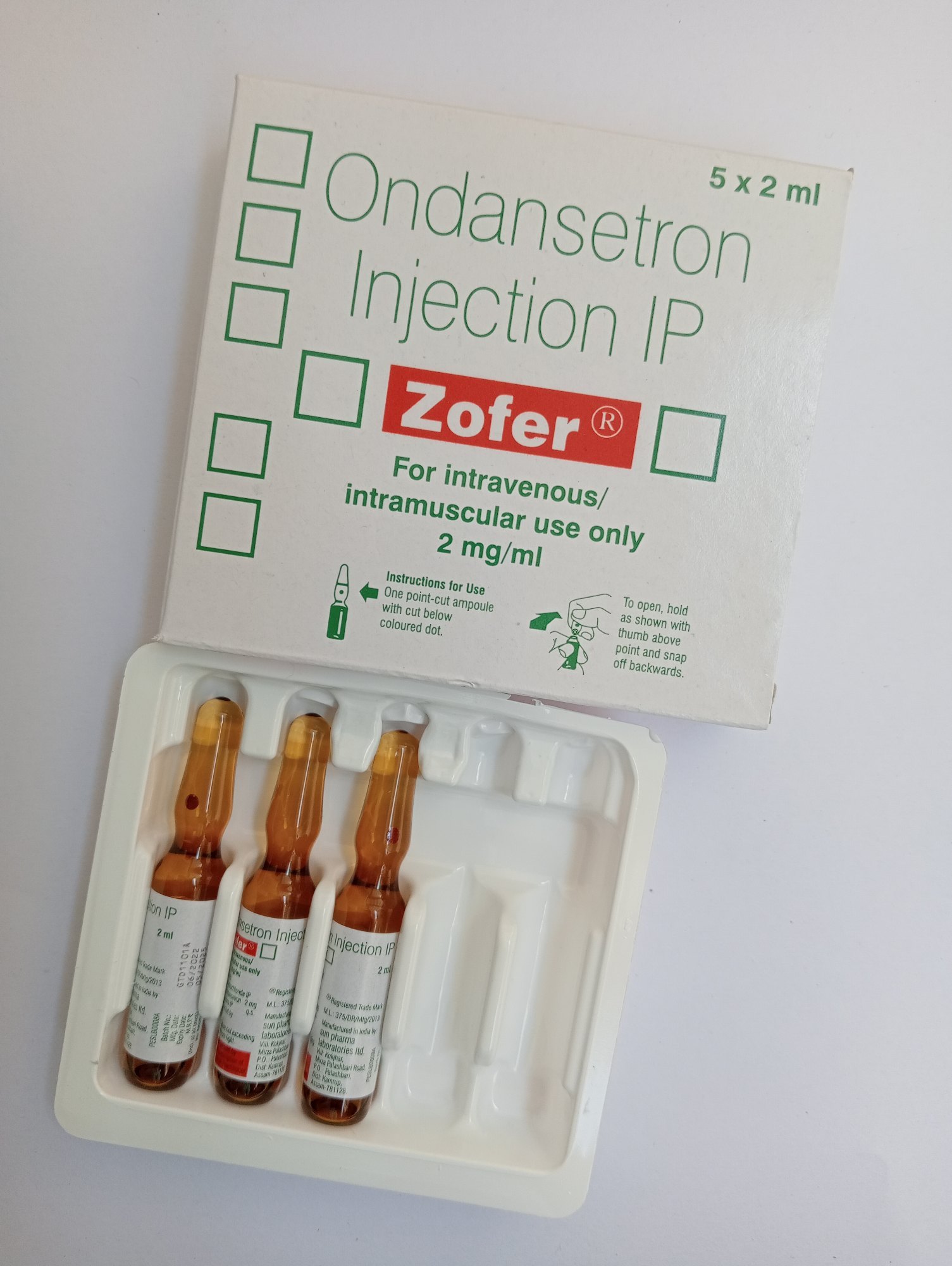 Zofer 4 mg Injection 2 ml is a medicine employed in the prevention as well as in the treatment of nausea and vomiting caused by chemotherapy. Nausea is the sense of discontent in the abdomen that usually precedes vomiting. Vomiting, however, is the compelled, voluntary, or involuntary expulsion of stomach contents orally. Zofer 4 mg Injection 2 ml has Ondansetron as its active ingredient, which acts by inhibiting the effect of serotonin, a substance that activates the vomiting centre in the brain.